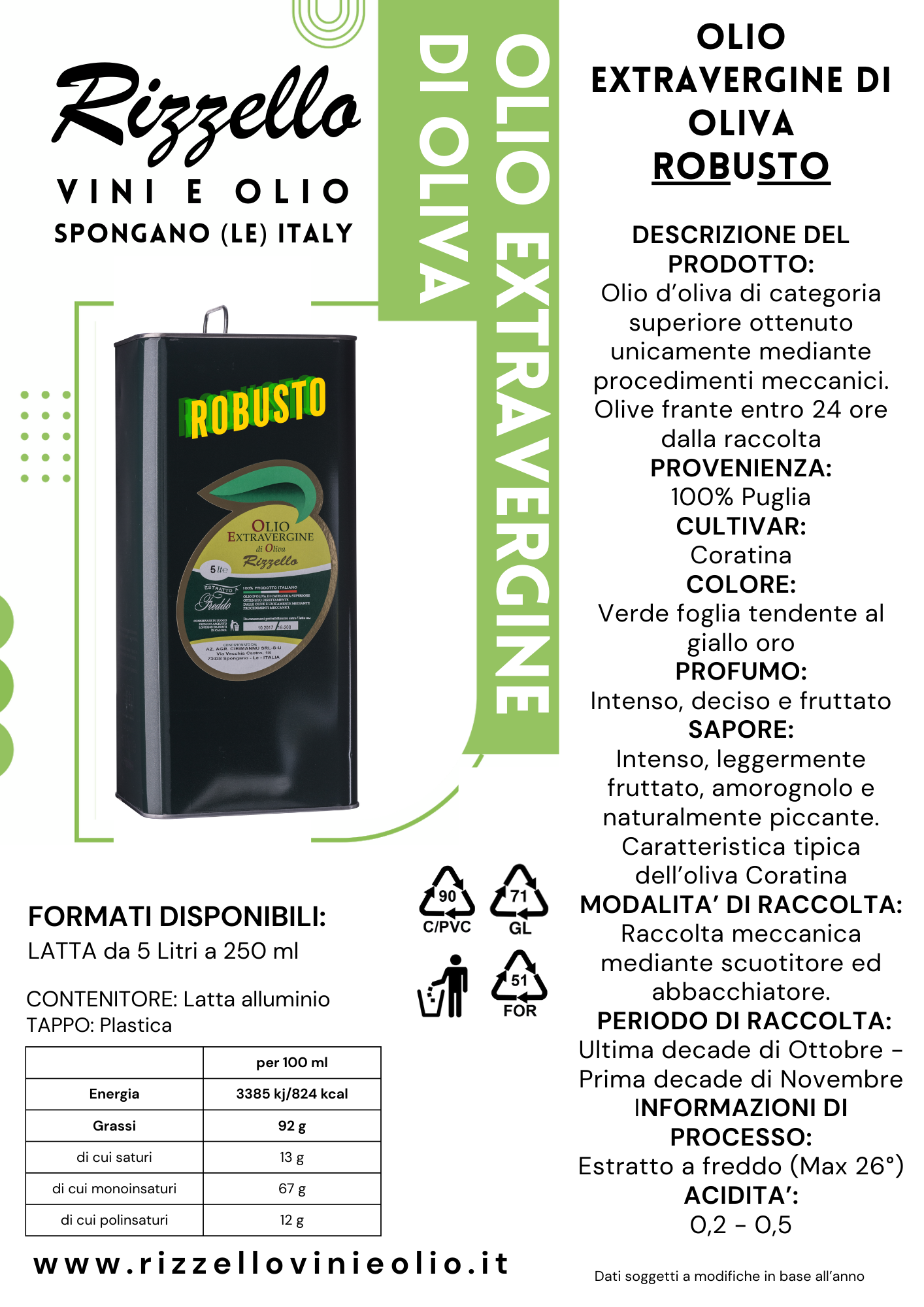 Olio Extravergine di Oliva Robusto CAMPAGNA 2025/2026 - Lattina