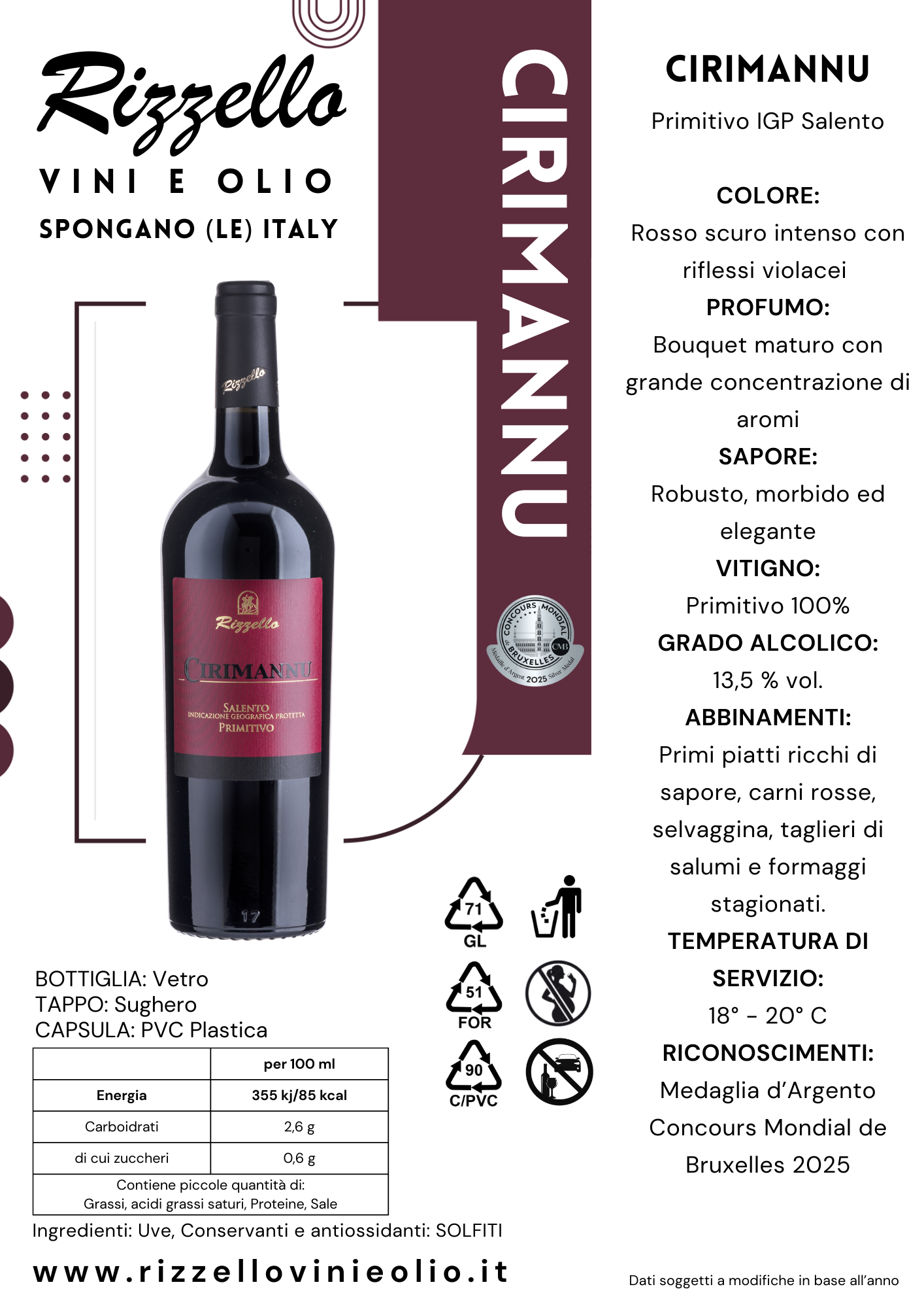 Cirimannu - Rosso Primitivo - I.G.T. Salento - Bott. ml 750